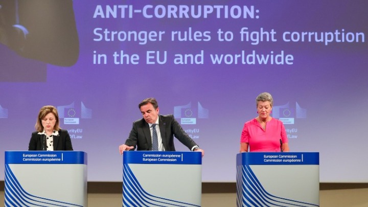 Οι Αντιπρόεδροι της Ευρωπαϊκής Επιτροπής, Μαργαρίτης Σχοινάς και Βιέρα Γιούροβα συνεχάρησαν τις ελληνικές αρχές για τις συλλήψεις σχετικά με την δολοφονία του Γιώργου Καραϊβάζ απαντώντας σε σχετική ερώτηση κατά τη διάρκεια συνέντευξης τύπου στις Βρυξέλλες για την καταπολέμηση της διαφθοράς.