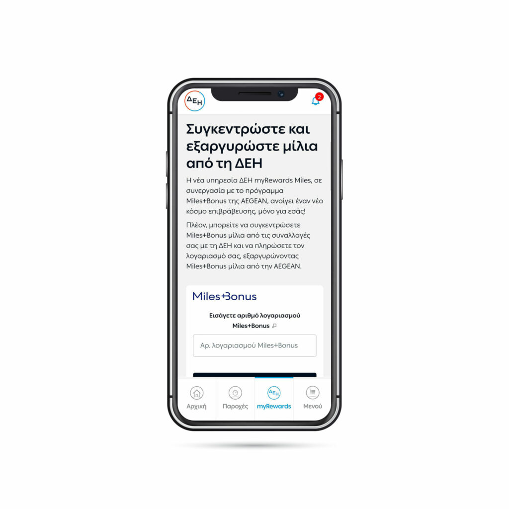 - Συγκέντρωση μιλίων στις συναλλαγές με τη ΔΕΗ