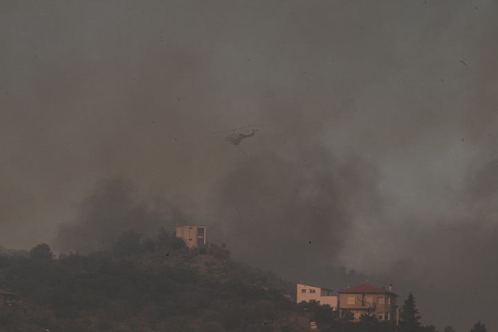 Το βράδυ αναμένεται να είναι δύσκολο με τις δυνάμεις της Πυροσβεστικής να δίνουν μάχη για να ανακόψουν τη φωτιά.