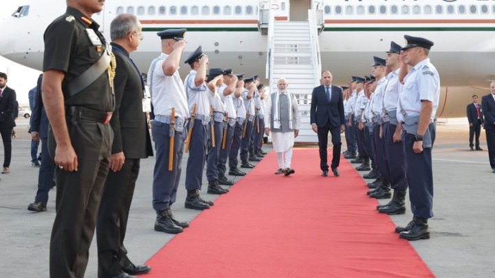 «Προσγειώθηκα στη Αθήνα. Προσβλέπω σε μία παραγωγική επίσκεψη στην Ελλάδα με στόχο την εκβάθυνση της φιλίας μεταξύ Ινδίας – Ελλάδας. Θα έχω συνομιλίες με τον Έλληνα πρωθυπουργό Κυριάκο Μητσοτάκη και θα έρθω σε επαφή με την Ινδική κοινότητα», αναφέρει σε μήνυμά του στο Twiter Ναρέντρα Μόντι κατά την άφιξή του στην Ελλάδα. Τον κ. Μόντι, ο οποίος θα έχει συναντήσεις με την Πρόεδρο της Δημοκρατίας, Κατερίνα Σακελλαροπούλου, και τον πρωθυπουργό, Κυριάκο Μητσοτάκη, υποδέχθηκε στο αεροδρόμιο «Ελευθέριος Βενιζέλος» ο υπουργός Εξωτερικών, Γιώργος Γεραπετρίτης.