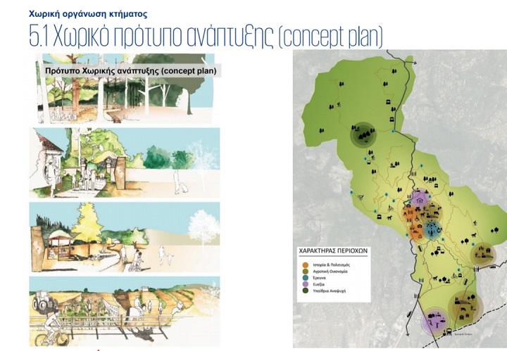 - Δυνατότητα χωροθέτησης καταστημάτων μουσείων-εκθετηρίων και χώρων φιλοξενίας στη ζώνη Δ3. Πρόκειται για την ζώνη που αναπτύσσεται το κτηριακό συγκρότημα, όπου συγκεντρωνόταν στο παρελθόν η βασική παραγωγική δραστηριότητα και φιλοξενία του Κτήματος αποκαλούμενο ως «το χωριό».