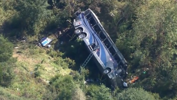 Το λεωφορείο, στο οποίο επέβαιναν μέλη της φιλαρμονικής ορχήστρας του λυκείου Φαρμινγκντέιλ, εξετράπη της πορείας του και έπεσε σε χαράδρα περίπου 15 μέτρων.