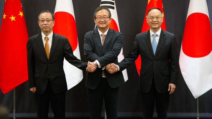 Η Νότια Κορέα φιλοξενεί σήμερα υψηλόβαθμους διπλωμάτες από την Κίνα και την Ιαπωνία σε μία σπάνια τριμερή διπλωματική διαβούλευση που έχει ως στόχο να κατευνάσει τις ανησυχίες του Πεκίνου σχετικά με τη στενή συνεργασία της Σεούλ και του Τόκιο με την Ουάσινγκτον.