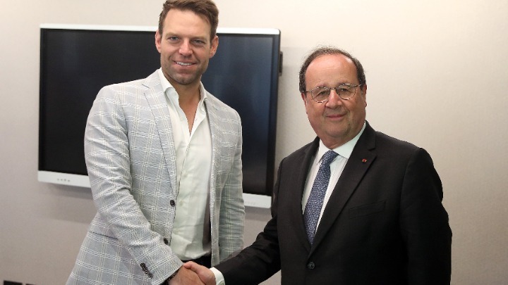Συνάντηση με τον πρώην Πρόεδρο της Γαλλίας, Φρανσουά Ολάντ, είχε ο Πρόεδρος του ΣΥΡΙΖΑ-ΠΣ, Στέφανος Κασσελάκης, κατά τη διάρκεια του Ευρωπαϊκού Συνεδρίου για τη Μικρομεσαία Επιχειρηματικότητα.