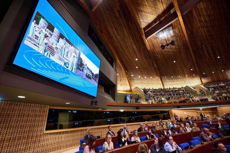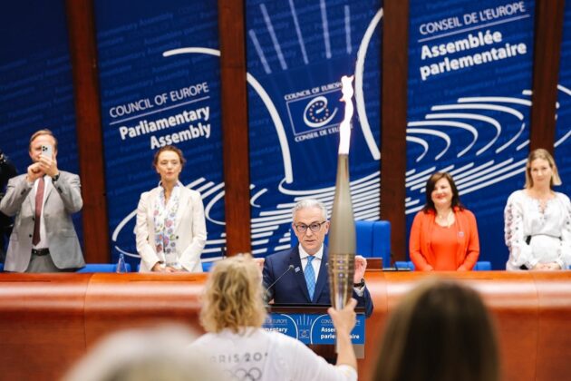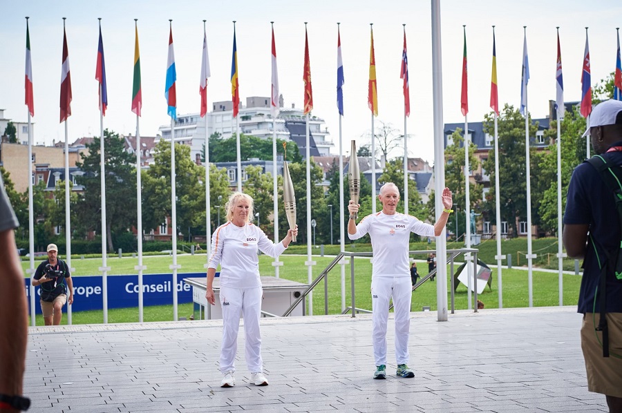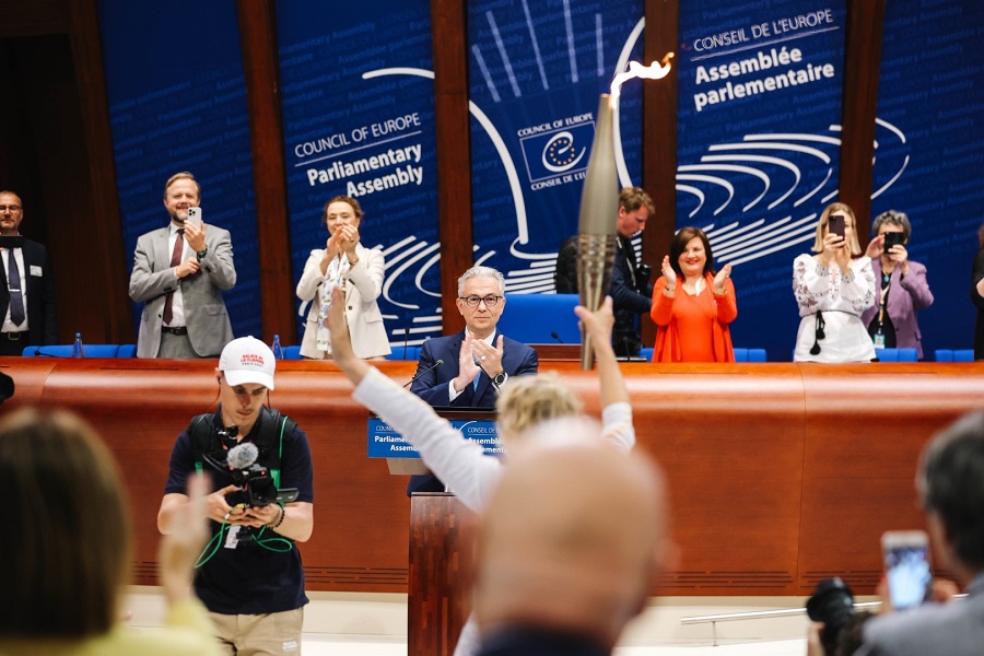 Ο Πρόεδρος της Κοινοβουλευτικής Συνέλευσης του Συμβουλίου της Ευρώπης κ. Θεόδωρος Ρουσόπουλος, είχε την τιμή να υποδεχθεί την Ολυμπιακή φλόγα κατά τη θερινή συνεδρίαση της Ολομέλειας. Με την ευκαιρία του εορτασμού των 75 χρόνων του Συμβουλίου της Ευρώπης, για πρώτη φορά στην ιστορία, η Ολυμπιακή φλόγα εισήλθε στο Κοινοβούλιο του ΣτΕ και έγινε δεκτή με χειροκροτήματα από 612 βουλευτές από 46 χώρες – μέλη, που εκπροσωπούν 700 εκατομμύρια κατοίκους από όλη την Ευρωπαϊκή ήπειρο.