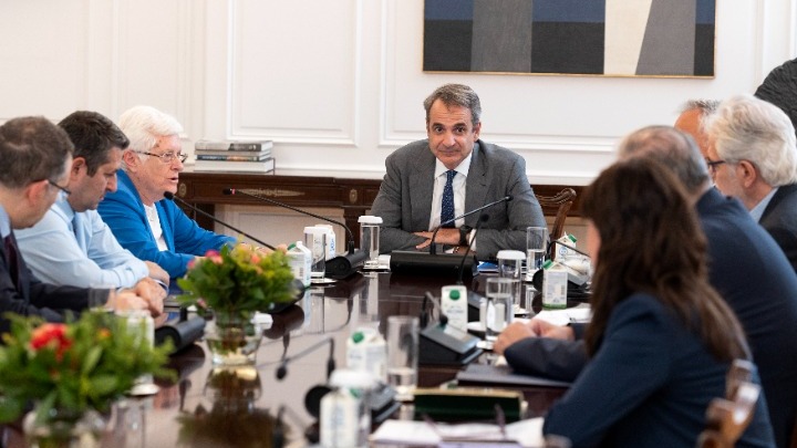 Ο πρωθυπουργός Κυριάκος Μητσοτάκης προήδρευσε το απόγευμα σε διυπουργική σύσκεψη με τη συμμετοχή της προέδρου της επιτροπής ανταγωνισμού, Αϊρίν Έβελυν Μικέλας Μαίρης Σαρπ.