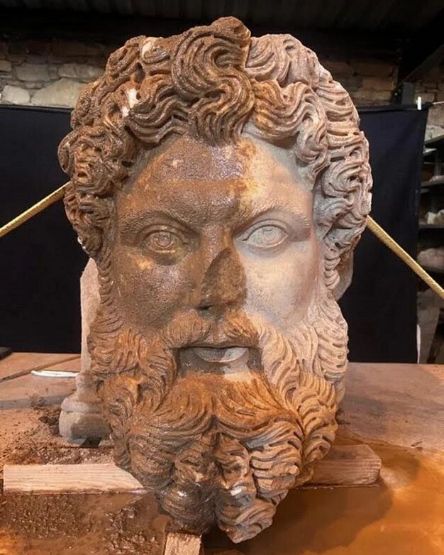 Το κεφάλι του γενειοφόρου Δία, έχει ύψος 66 εκατοστά. Αποκαλύφθηκε ανάποδα, πολύ κοντά στην επιφάνεια, στις 16 Ιουλίου, κατά τη διάρκεια ανασκαφών στην περιοχή και η ανακοίνωση έγινε χθες.