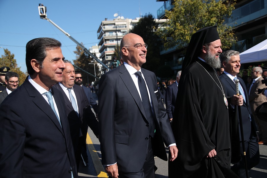 Στην παρέλαση για την εθνική επέτειο της 28ης Οκτωβρίου 1940 στη Θεσσαλονίκη παρέστη ο υπουργός Εθνικής Αμυνας Νίκος Δένδιας.