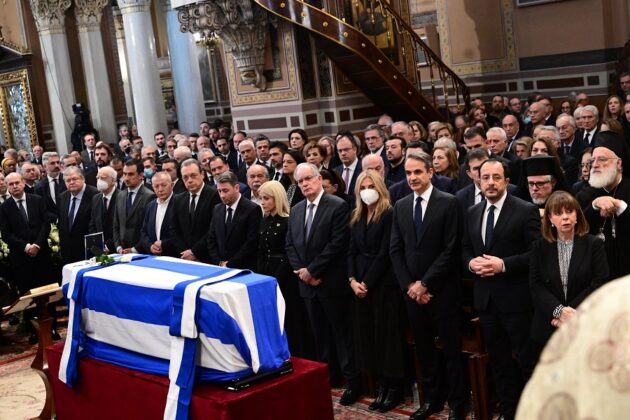 Το ύστατο χαίρε στον Κώστα Σημίτη απευθύνουν αυτή την ώρα στη Μητρόπολη Αθηνών η οικογένεια του, ο πολιτικός κόσμος της χώρας και εκπρόσωποι ξένων αντιπροσωπειών, καθώς και πολίτες που έσπευσαν να αποχαιρετήσουν τον πρώην πρωθυπουργό.