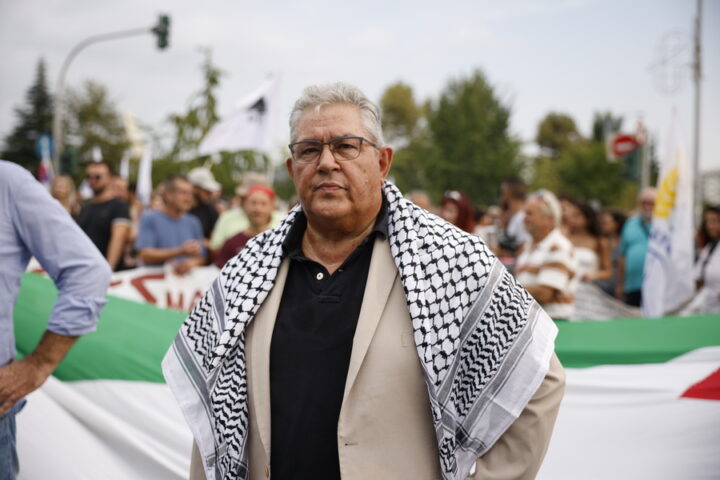 Επισήμανε ότι το ΚΚΕ «παλεύει σε πολύ δύσκολες συνθήκες, εν μέσω δύο ιμπεριαλιστικών πολέμων στην περιοχή, κυρίως με στόχο να μην εμπλακεί η Ελλάδα σε αυτούς, στα πλαίσια των σχεδιασμών των ΗΠΑ-ΝΑΤΟ-ΕΕ, ότι βρίσκεται σταθερά στο πλευρό του Παλαιστινιακού λαού, όπως και η πλειοψηφία του ελληνικού λαού».