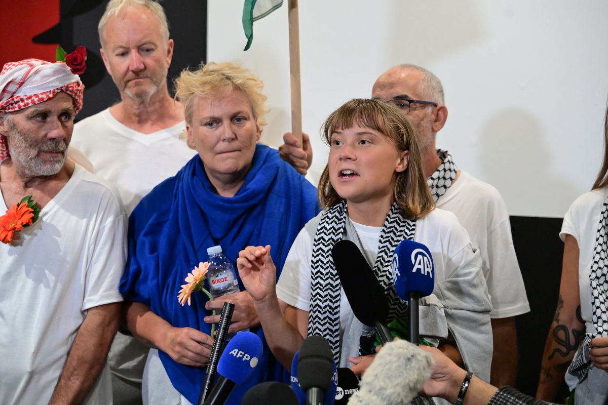 «Άλλη μια φορά το διεθνές δίκαιο παραβιάστηκε [από το Ισραήλ], εμποδίζοντας την ανθρωπιστική βοήθεια να φτάσει στη Γάζα», δήλωσε η Σουηδέζα Γκρέτα Τούνμπεργκ κατά την άφιξή της στο αεροδρόμιο Ελευθέριος Βενιζέλος.