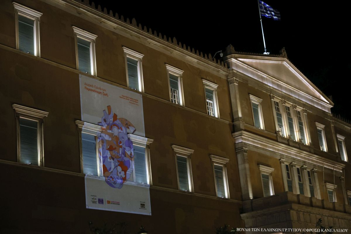 Με αφορμή την Ευρωπαϊκή Ημέρα Δωρεάς Οργάνων Ιστών και Κυττάρων, που έχει καθιερωθεί από το Συμβούλιο της Ευρώπης να εορτάζεται κάθε χρόνο το δεύτερο Σάββατο του Οκτωβρίου, η Βουλή των Ελλήνων φωταγώγησε σήμερα την πρόσοψή της με το πράσινο χρώμα που συμβολίζει το «δώρο ζωής» της μεταμόσχευσης.