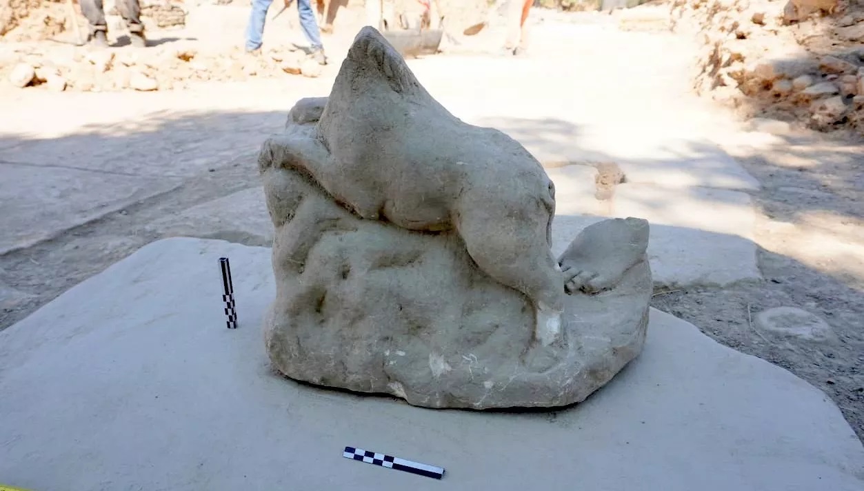 Πρόκειται για ένα άγαλμα, που απεικονίζει ένα ζώο του γένους των συιδών, δηλαδή των  οικόσιτων χοίρων. Η ανασκαφή διεξήχθη από τις 14 Ιουλίου έως τις 9 Αυγούστου 2025, και το ερευνητικό έργο παρείχε νέα δεδομένα για τη χωροταξία της κρητικής μητρόπολης. Μια διεπιστημονική ομάδα αρχαιολόγων και τοπογράφων από το Πανεπιστήμιο της Ρώμης «La Sapienza», σε στενή συνεργασία με την Εφορεία Αρχαιοτήτων Ηρακλείου, έκανε τις έρευνες. Οι οποίες, -σύμφωνα με την Ιταλική Αρχαιολογική Σχολή- επικεντρώθηκαν στη Βόρεια Οδό, τον κύριο οδικό άξονα της πόλης, συνεχίζοντας την αποκάλυψη του λιθόστρωτου της οδού, το οποίο διατηρείται σε εξαιρετική κατάσταση.