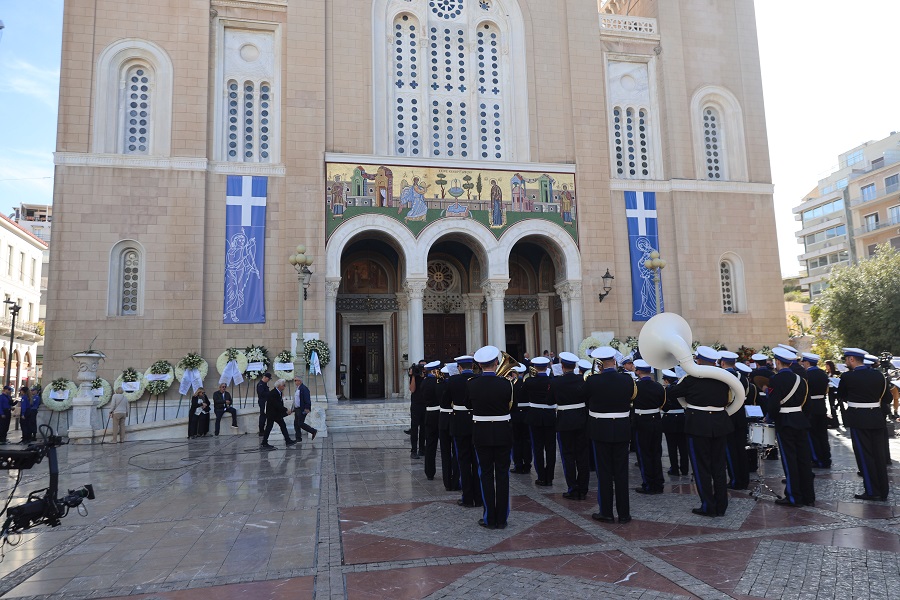 Μεγάλο πλήθος από ανθρώπους κάθε ηλικιών που είχε προσέλθει για να προσκυνήσει τη σορό, η οποία εξετίθετο στο παρεκκλήσι της Μητρόπολης έως τις 11:30 και είχε συγκεντρωθεί κατόπιν στην πλατεία Μητροπόλεως, με σκυμμένο κεφάλι και περισσή συγκίνηση, χαιρέτισε με χειροκροτήματα και επευφημίες το φέρετρο, στην πορεία του προς το εσωτερικό του κυρίως ναού, όπου θα ψάλλει η εξόδιος δοξολογία.
