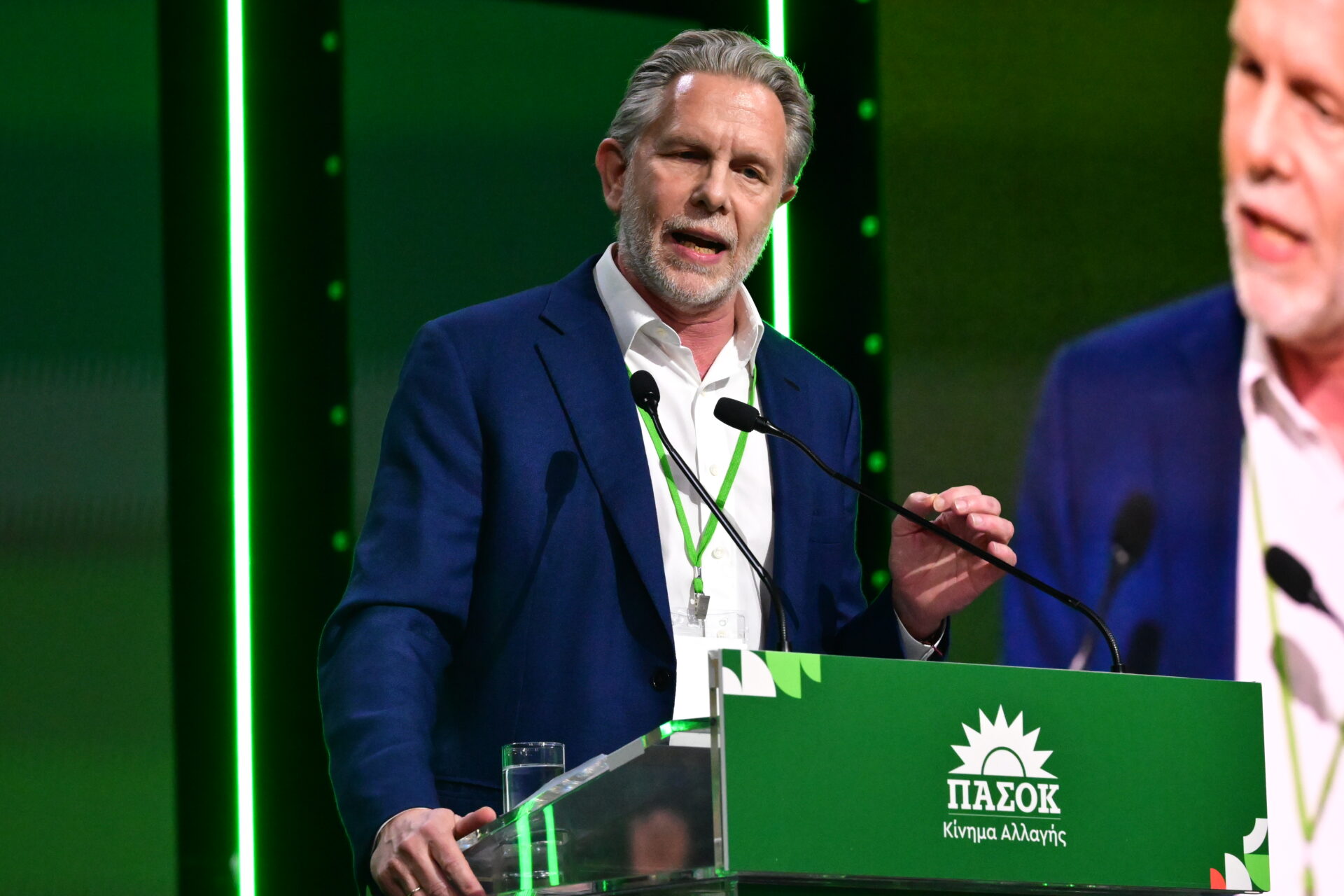 Ο κ. Γερουλάνος υπογράμμισε ότι «εχθρός μας είναι μόνο τα προβλήματα του λαού. Εμπόδιο στο δρόμο να τα λύσουμε η Νέα Δημοκρατία και ο κύριος Μητσοτάκης». Κατηγόρησε τη ΝΔ ότι ενώ «ήρθαν με πρόσχημα την Δημοκρατία, την ποδοπάτησαν όπου, όπως και όποτε μπορούσαν», ενώ «ήρθαν μιλώντας για “Αριστεία”, εννοούσαν αλαζονεία, αυθαιρεσία, ατιμωρησία» και ενώ «ήρθαν επικαλούμενοι τη σταθερότητα, μας ενέπλεξαν σε περιφερειακές διαμάχες που αποσταθεροποιούν τον κόσμο». Υποστήριξε ότι «είναι το πρόβλημα. Και είμαστε η λύση», για να σημειώσει ότι «αυτά τα δύο δεν συμβιβάζονται ούτε κυβερνητικά. Σε καμία περίπτωση». «Σωστός ο Χάρης (σ.σ. Δούκας) που επέμεινε. Σωστός ο πρόεδρος που το υιοθέτησε», σχολίασε, «όχι μόνο διότι είναι κακό για το ΠΑΣΟΚ. Διότι είναι κάκιστο για την πατρίδα». Τόνισε ότι «δεν νοείται λοιπόν κανένας κυβερνητικός συμβιβασμός που υπονομεύει το μέλλον της πατρίδας μας. Για καμία καρέκλα εξουσίας. Σε καμία περίπτωση».