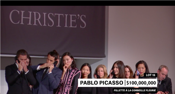 Ο πίνακας του Πάμπλο Πικάσο “La Fillette a la corbeille fleurie” που παρουσιάζει ένα γυμνό κορίτσι να κρατά ένα πανέρι με λουλούδια κατακυρώθηκε αντί 115 εκατομμυρίων δολαρίων στην πρώτη μεγάλη δημοπρασία που οργάνωσε ο οίκος Christie’s στη Νέα Υόρκη με έργα της τεράστιας συλλογής Ροκφέλερ.